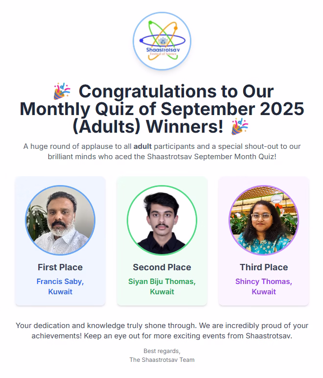 Shaastrotsav Monthly Quiz